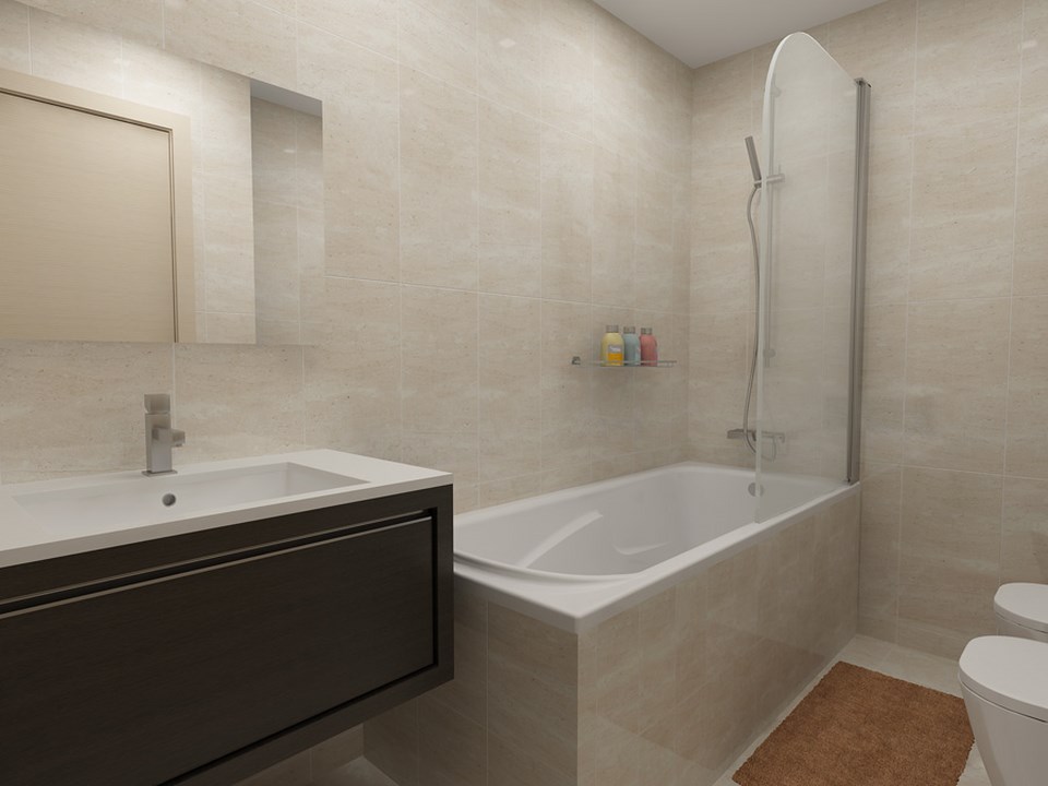 - Paredes e pavimento em Grés Cerâmico Polido Rectificado;