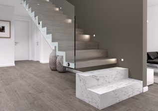 - Revestimentos e pavimentos em grés cerâmico polido rectificado;