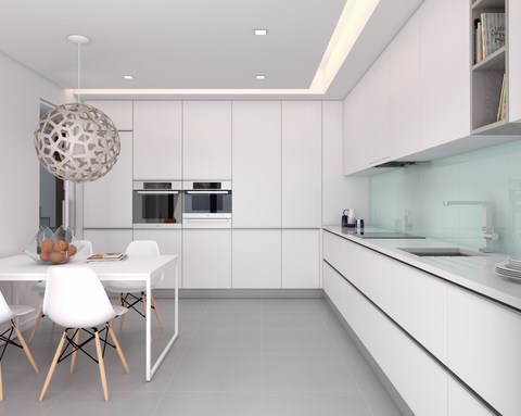 - Móveis da cozinha em termolaminado e bancadas em quartzo natural;