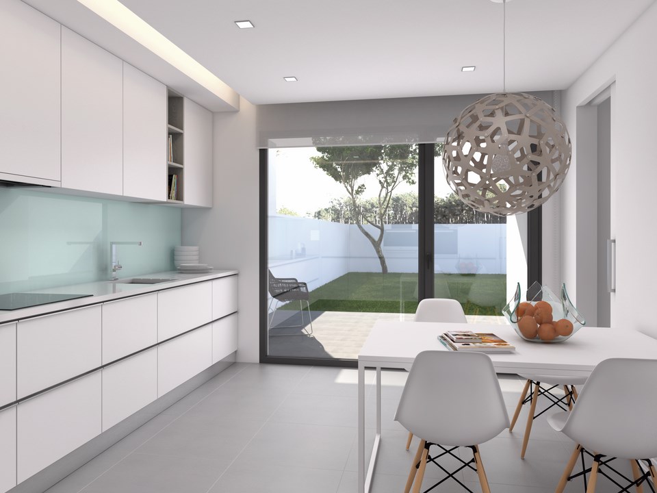 - Cozinha equipada com forno, microndas, placa vitrocerâmica, exaustor, lava-loiça em inox, balde ecológico, combinado, máquinas de lavar roupa e loiça.