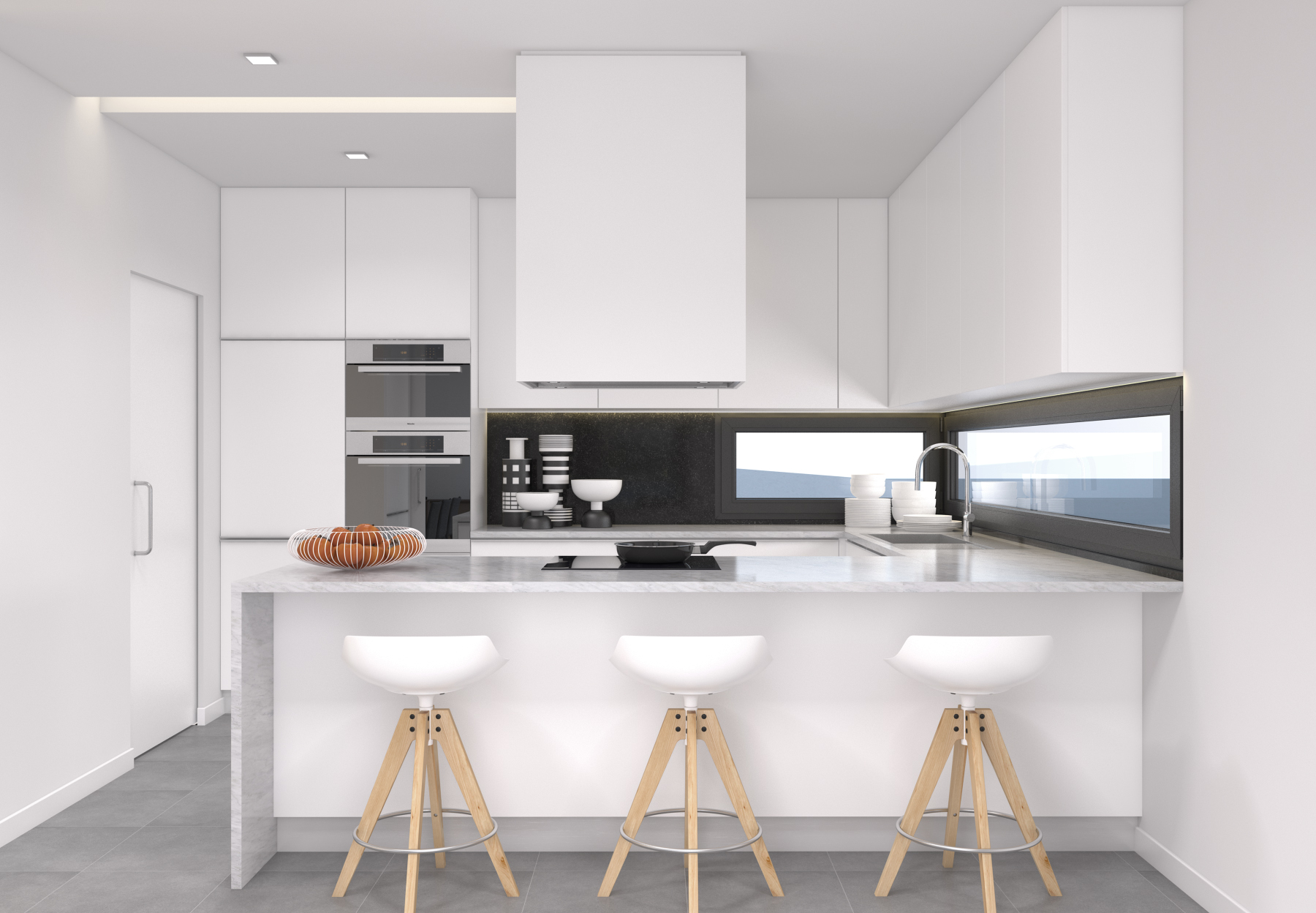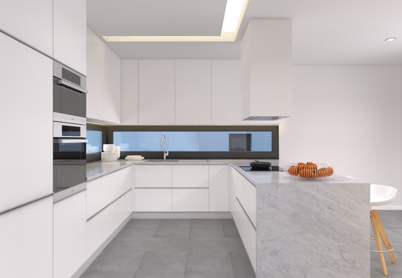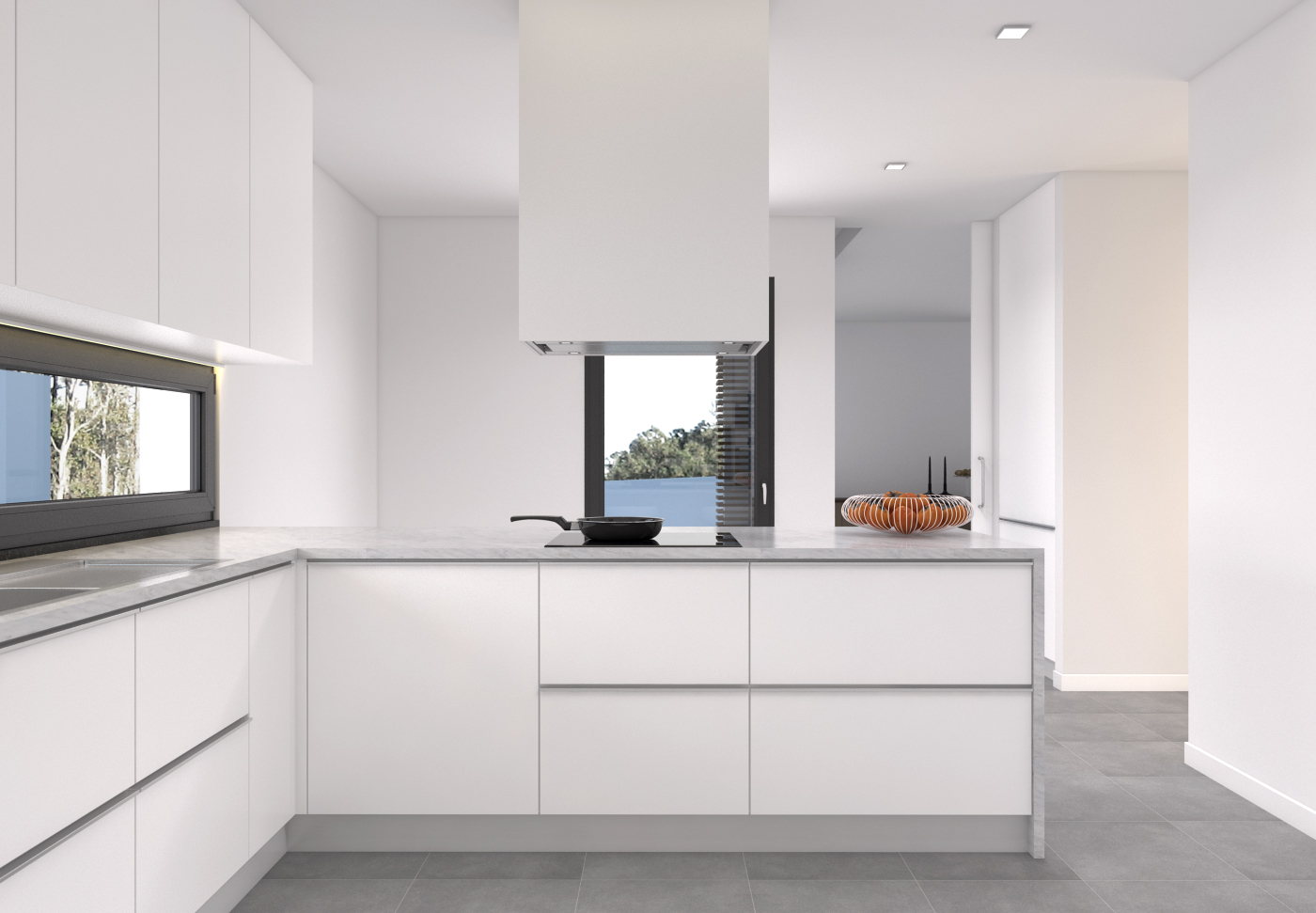 - Móveis da cozinha em termolaminado e bancadas em quartzo natural;