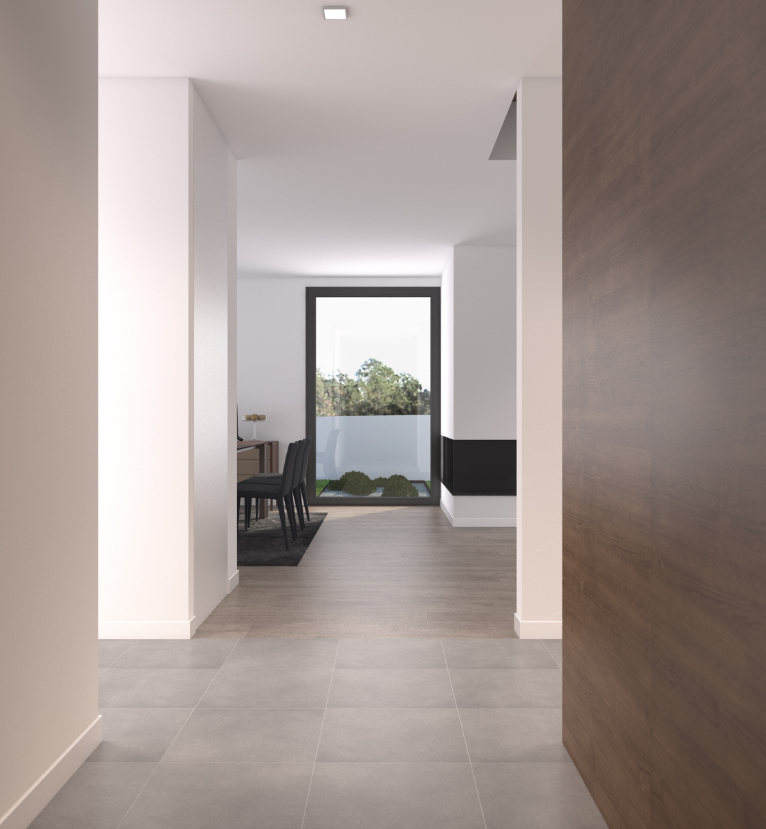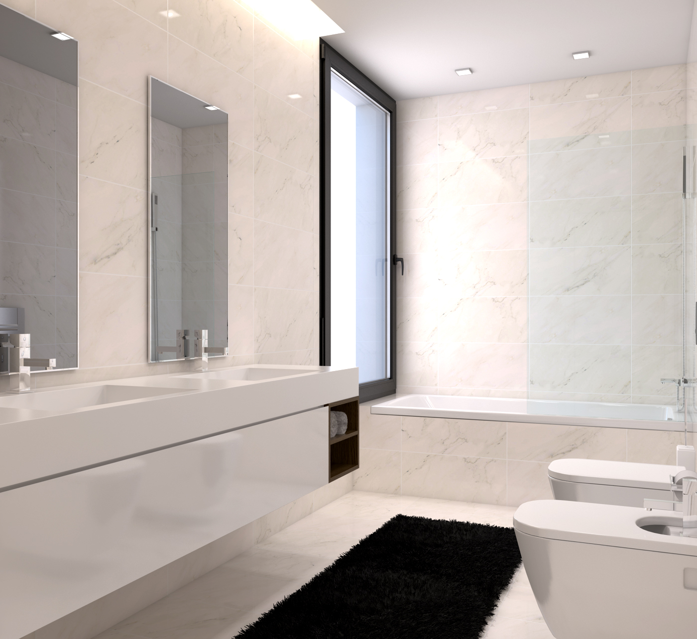 - Revestimentos e pavimentos em grés cerâmico polido rectificado;