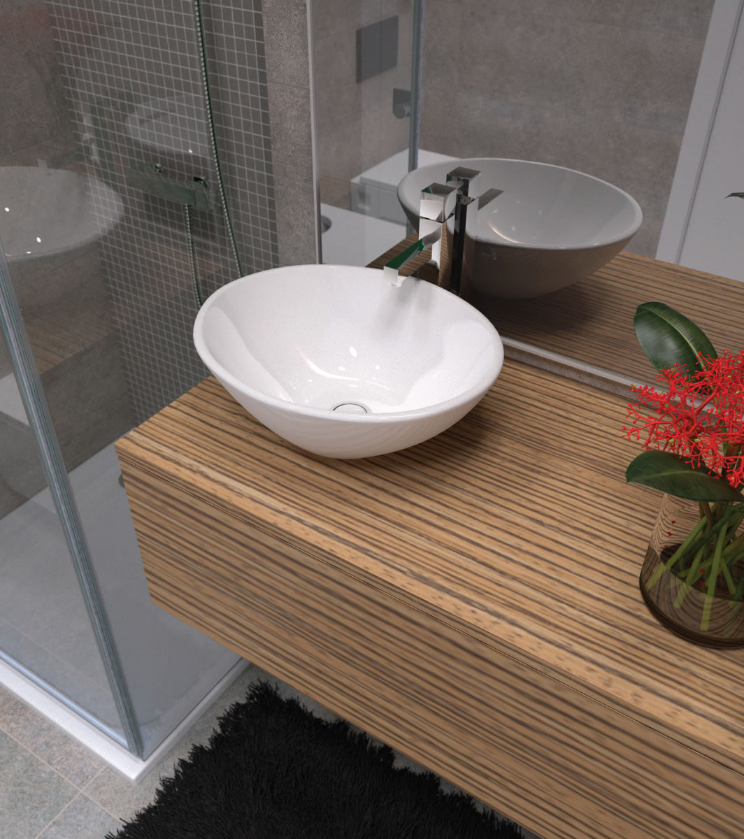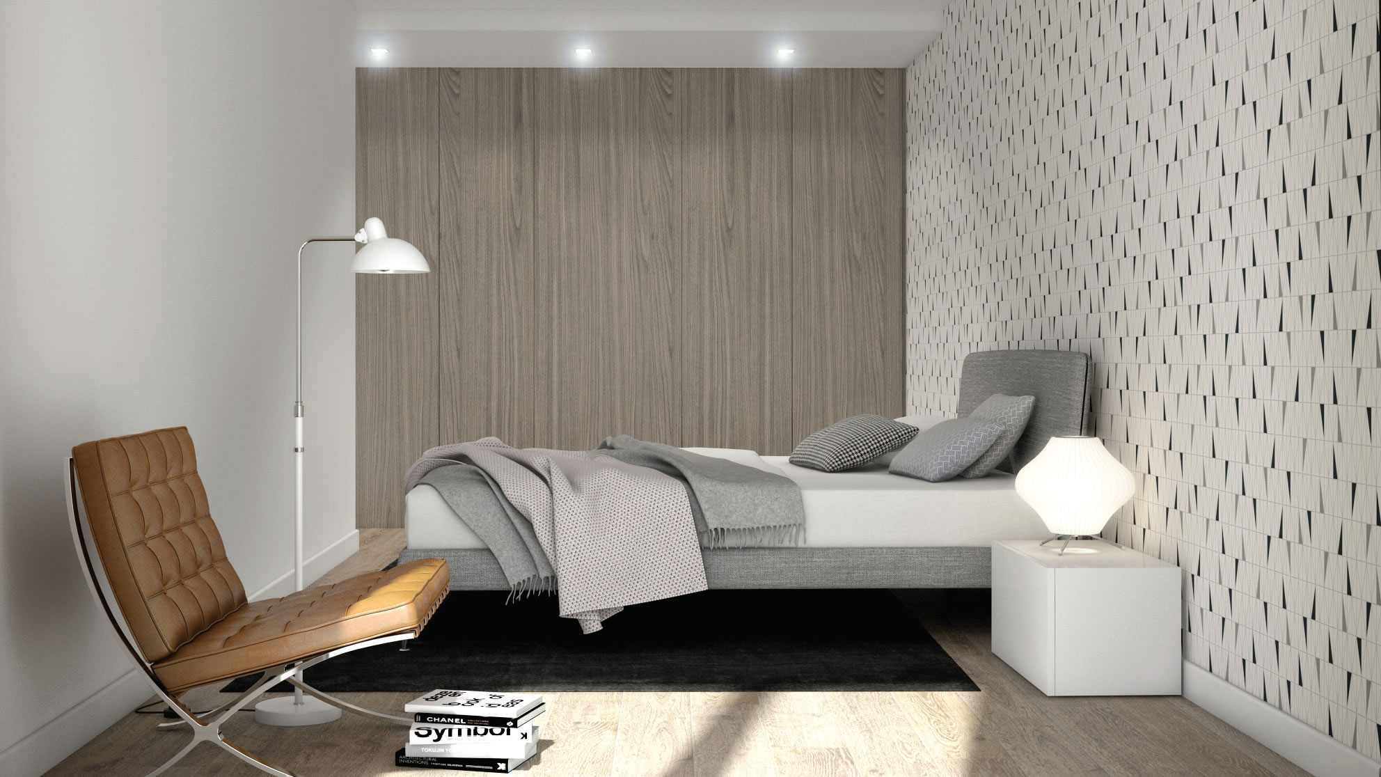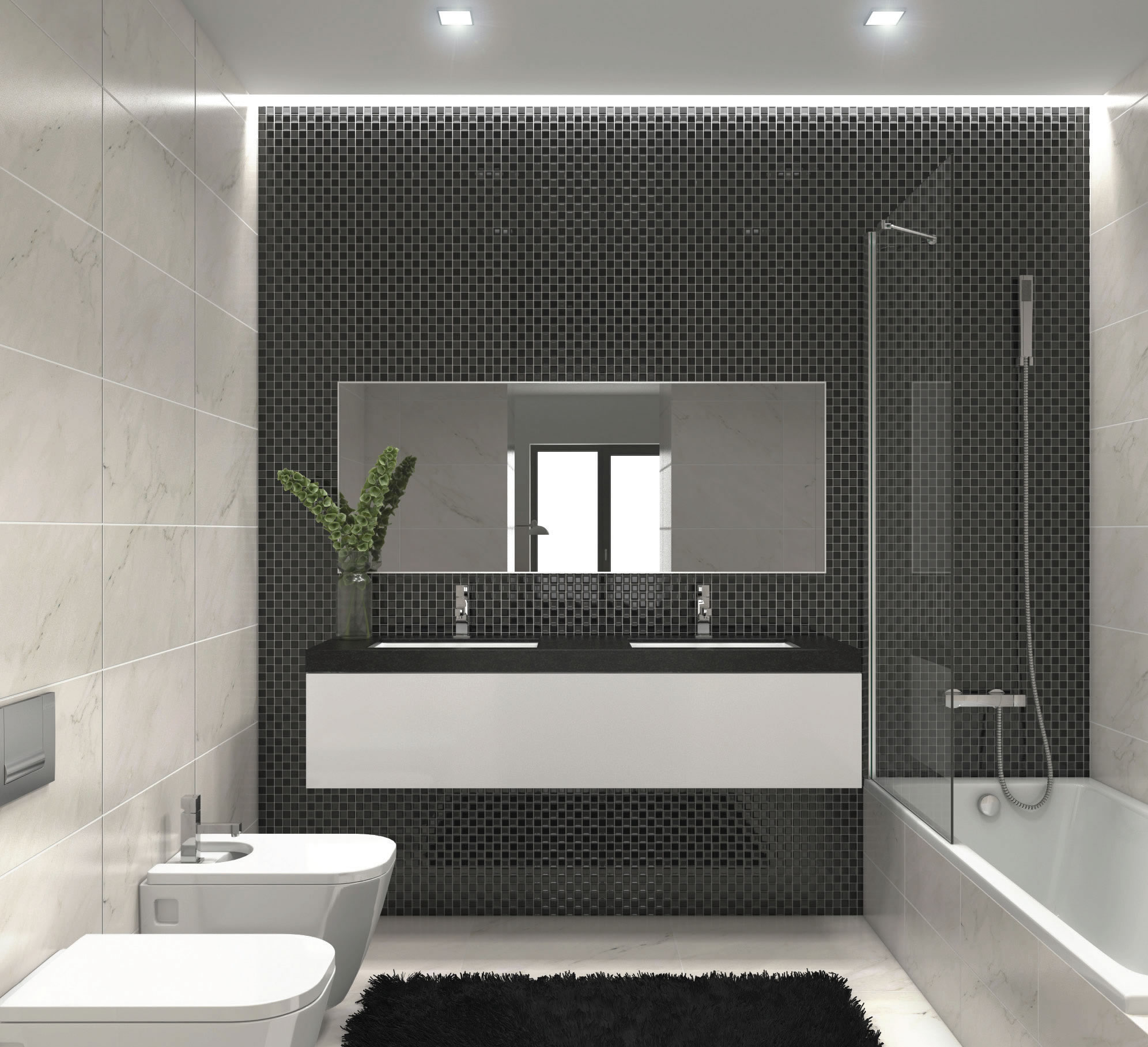 - Revestimento em grés cerâmico polido retificado entre os móveis (cor a definir) ou vidro lacado